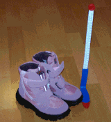 Um nun sicher feststellen zu können, ob die ausgesuchten Schuhe nicht nur schön glitzern sondern eben auch die richtige Größe haben, gibt es seit kurzem eine Art Messgerät (siehe Foto). Man kann sich zu der Problematik hervorragend im Internet unter www.kinderfuesse.com informieren. Hier kann man auch das Messgerät beziehen.